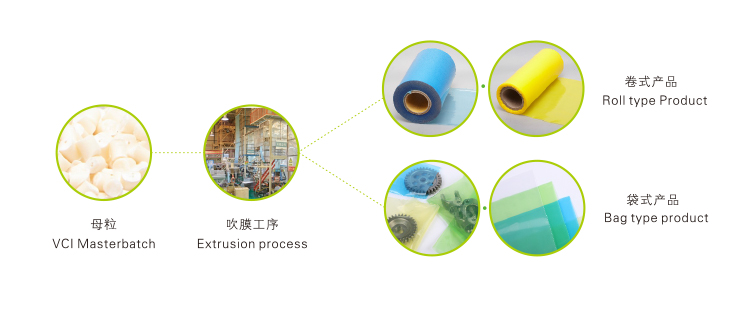 3.在生產(chǎn)氣相防銹塑料膜類產(chǎn)品過(guò)程中可根據(jù)需要添加色母、抗氧化劑、阻燃劑等功能母粒。