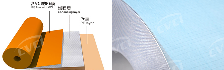 織物增強型氣相防銹膜是我公司專利產(chǎn)品,該產(chǎn)品在國內(nèi)外冶金領(lǐng)域應(yīng)用廣泛。由氣相防銹膜與聚乙烯或聚丙烯材質(zhì)復合而成,采用兩層或三層復合結(jié)構(gòu)。